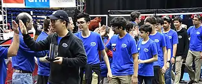 The Robotics Team is one of the larger organizations at Bellarmine with around 80 members. The team has won the World Chairman's Award (the highest award in FIRST), and the World Championships 5 times, the most of any FIRST team, in 2011, 2014, 2017, 2018, and 2022.[17] The team also holds the record for most regional events won, having 40 regional wins to their name.[18] In 2008, Bellarmine first entered VEX Robotics and in 2009–2010 won 16 regional competitions, 6 of them in international competition. In the 2010–2011 season, Bellarmine's VEX team 254A won the VEX World Excellence Award, the highest it confers. In 2014, the team won three regionals, the Curie Division, and World Championships. The school shares a partnership with NASA's Ames Research Center in Mountain View, California.