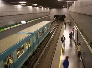 Bellas Artes is an underground metro station on the Line 5 of the Santiago Metro. It has platforms narrower than those of the older Santiago's metro stations and has only one exit. Chilean National Museum of Fine Arts, which is located on Parque Forestal, and Santa Lucía Hill are within walking distance from the station. The station was opened on 3 March 2000 as part of the extension of the line was extended from Baquedano to Santa Ana.[2]