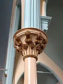 There is a galleried interior, narthex with flanking stairs to gallery. Boarded dado. Timber pews. Cast-iron columns supporting panelled gallery. Communion table in front of timber pulpit with stair access and timber Gothic panelled organ and case behind. A notable feature of the building are the vast array of stained glass windows adorning the sanctuary and narthex. The most recently installed stained glass window was designed and executed by a Church Member, Lesley Marshall, and is located in the narthex.