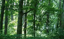 Belt Woods is a nature reserve in Prince George's County, Maryland, U.S., containing the "South Woods", a 43-acre (170,000 m2) woodland which constitutes one of the last stands of old growth hardwood forest on the Atlantic coastal plain. It is a mere 8 miles (13 km) east of Washington, D.C. Many of its white oaks and tulip poplars are more than three feet in diameter and soar more than 100 feet (30 m) before branching. The "South Woods" were designated a National Natural Landmark in 1974.