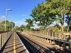 Beltring railway station is on the Medway Valley Line in Kent, England, serving the village of Beltring. It is 36 miles 50 chains (58.9 km) down the line from London Charing Cross via Paddock Wood and is situated between Paddock Wood and Yalding. The station and all trains that call are operated by Southeastern.