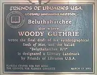 In 2003, Friends of Libraries USA put Beluthahatchee on its national register of literary sites and, to commemorate the occasion, Arlo Guthrie gave a concert in Jacksonville.[30]