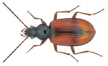 Bembidion testaceum (also known as river shingle beetle)[1] is a small, fast-moving water beetle in the Trechinae subfamily that can be found in Austria, Benelux, Bulgaria, Czech Republic, France, Germany, Great Britain, Greece, Hungary, Liechtenstein, Poland, Romania, Slovakia, Spain, Switzerland, Ukraine, and all states of former Yugoslavia.[2]