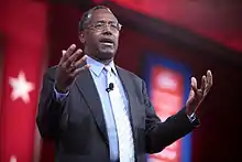 He was a featured speaker at the 2013 Conservative Political Action Conference (CPAC), and tied for seventh place in the Washington Times/CPAC 2013 Straw Poll with 4% of the 3,000 ballots cast.[13][14] In the 2014 CPAC straw poll, he came in third place with 9% of the vote, behind senators Ted Cruz of Texas (with 11%) and Rand Paul of Kentucky (31%).[15] In the 2015 CPAC poll, Carson came in fourth behind Paul, Wisconsin governor Scott Walker, and Cruz with 11.4%.[16]