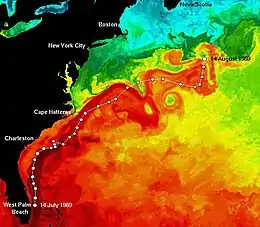 It began its voyage on July 14, 1969, off Palm Beach, Florida, with Piccard as the mission leader. Accompanied by surface support vessels, it resurfaced on August 14, 1,444 miles (2,324 km) away, 300 miles (480 km) south of Halifax, Nova Scotia, Canada. The Ben Franklin made a few more dives after 1969, including the first deep-sea dive for Robert Ballard, the discoverer of the wreck of the Titanic.