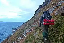 Some walkers may be tempted to use one of the above-mentioned starting points, then descend via the other before completing the loop via part of the "Postman's Path" which follows the coast from Culnacraig to Strathcanaird. Named after the postmen who used it before the hamlets of the Coigach were connected to the road network, the path links Culnacraig with Bulghassary over about seven miles. Warnings at signposts at each end should not be dismissed. Even a fit walker may struggle to complete this leg in less than four hours. At times the extremely narrow path traverses 45-degree slopes which drop straight into Loch Broom. Easy scrambling is required in places, and some of these moves can feel exposed. Burn crossings may be difficult or even impossible in spate, in high summer vegetation may obscure the path and at the Strathcanaird end, bogs add to the difficulties. Despite its low altitude, this route traverses steep, exposed slopes, and should be regarded as a true mountain walk. In 2021 the Coigach & Assynt Living Landscape announced that an upgrade to the path had been completed. Apart from a short section of slab paving and a few additional marker posts, as of June 2021 the exposed sections of the track appear to be unchanged.