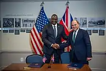 In a phone call with Saudi Arabia's vice defence minister Prince Khalid bin Salman, Wallace discussed ways to strengthen defence relations with Saudi Arabia, particularly military exports.[47] In December 2021, he met with Saudi Arabia's Crown Prince Mohammed bin Salman to discuss cooperation in various fields, especially defence.[48]