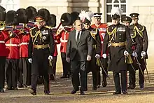 After training as a cadet at the Royal Military Academy Sandhurst, in June 1991 Wallace was commissioned into the Scots Guards as a second lieutenant, with a short service commission.[11] From 1991 to 1998, he served in Germany, Cyprus, Belize, and Northern Ireland.[2] In April 1993, he was promoted to lieutenant,[12] and also in 1993 was mentioned in dispatches,[13] for an incident in Northern Ireland in which the patrol he was commanding captured an entire IRA active service unit attempting to carry out a bomb attack against British troops.[2][14] In 1996 he was promoted to captain.[15]
