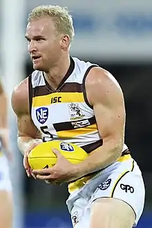 Recruited from the Zillmere Eagles in Queensland at pick 69 in the 2006 AFL Draft by North Melbourne.[1] Warren spent two years in development,[1][2] playing in the VFL, for Tasmania in 2007 and Werribee in 2008, before making his senior AFL debut for North Melbourne in Round 4, 2009.[1] Warren impressed coaching staff of the club with his performances, especially his four-goal haul against Brisbane at Etihad Stadium in Round 10. Warren played nine consecutive games after his debut, but broke his leg in Round 13[3] and missed the rest of the season.[2] Despite his broken leg, Warren was re-signed by North Melbourne in August 2009, with list manager, Cameron Joyce, stating that "It was a priority for us to lock Ben in", due to interest being shown in the Queensland native from the new Gold Coast team.[1]