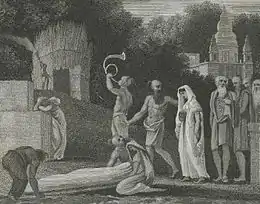 The ban was enacted by Bentinck after consultation with the Army administration found there was little opposition to any ban.[2][3] The most prominent campaigners to end the practice of sati were led by British Christian evangelists, such as William Carey, and Hindu reformers such as Ram Mohan Roy. The opposition came from some conservative Hindus led by Radhakanta Deb and the Dharma Sabha who saw the ban as an interference in Hindu religious affairs and violation of George III's Statute 37, which had assured Hindus complete non-interference with their religion. This resulted in a challenge to the decision to ban sati in the Privy Council, but the ban was upheld with four of the seven privy councillors supporting the ban.[4][5][6]