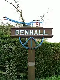 Benhall Green is a village in Suffolk, England. Benhall Green has a ford over the Fromus - which can be treacherous during heavy rains - and several protected wildlife sites, including the Wadd. The village also has a St Mary's Benhall Primary school, rated excellent by Ofsted , a new wooden play area, swings and slides, a phone box, and a noticeboard. There is a small farm shop on the A12 just outside the village, the Railway Farm Shop. In the village is a cottage built in 1698 with distinctive pargeting.