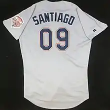 From 1991 to 1994, Santiago wore a jersey with the uniform number 09, making him one of the only major professional sports players to have ever worn a jersey with a leading zero as part of his uniform number.[26]