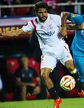 On 24 August 2014, Trémoulinas signed a three-year contract with La Liga club Sevilla, initially as a replacement for Liverpool-bound Alberto Moreno.[16] He made ten appearances as they won the UEFA Europa League in his first season, including the 3–2 win over Dnipro in the final in Warsaw.[17] In May 2017, Trémoulinas announced he would leave the club upon the expiry of his contract.[18]