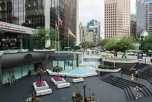 The Bentall Centre is a 1.5 million square foot[1] office complex and underground shopping mall, located in Downtown Vancouver's financial district. It is owned and managed by Hudson Pacific Properties. The shopping mall under the complex is known as "The Shops at Bentall Centre", and includes approximately 50 stores and a food court.[2] The mall has a direct connection to Burrard Station of the SkyTrain network.