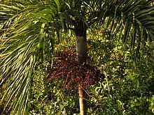 It is a monoecious tree. It grows generally on the steep rocky slopes and cliffs in the rainforests of the southern Western Ghats. It is endemic to this region. It is found mainly at an altitude of 1000–1800 msl.[2] This palm grows up to 10m tall with the girth of about 15 cm. Flowers and nuts can be seen throughout the year.[3] Although it is restricted to certain isolated regions, it is common in few places within its distributional range.[4] Its heart is eaten by the local tribal people.[5]