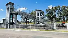On 23 October 1997, Beresfield was the site of a major rail accident, when a FreightCorp coal train passed a red signal and collided with the rear of another coal train standing on the same track. Six people were injured, including the station master and a passenger who jumped from the platform moments before the collision. The crash resulted in dozens of coal wagons tumbling over the platform and across the tracks, blocking all four tracks and destroying most of the station.[3][4][5] Three 82 class locomotives were destroyed.[6]