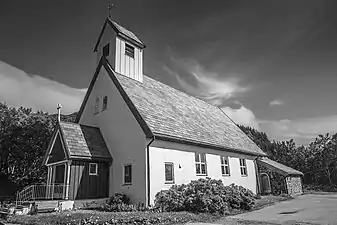 The earliest existing historical records of the church date back to the year 1589, but the church was not new that year. It was likely founded in the 15th century. The church was originally located along the rocky shoreline of the island about 2 kilometres (1.2 mi) northwest of the present church site. The church was a long church with a small steeple over the nave and an entry porch. Starting in the mid-1600s, the local parishioners began complaining of the poor condition of the old church, however nothing was done.[4]