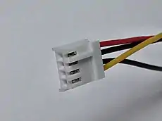 The male PCB connector on the 3½-inch floppy drive is a polarized right-angle male header, which is a TE Connectivity / AMP 171826-4,[4] the straight model is AMP 171825-4.[5]