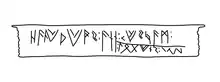 The Bergakker inscription is an Elder Futhark inscription discovered on the scabbard of a 5th-century sword. It was found in 1996 in the Dutch town of Bergakker, in the Betuwe, a region once inhabited by the Batavi.[1] There is consensus that the find dates from the period 425-475 and that the inscription is either the singular direct attestation of Frankish (Franconian), or the earliest attestation of Old Dutch[2] (Old Low Franconian).