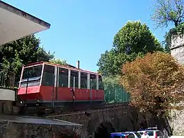 The Bergamo – San Vigilio funicular (Italian: Funicolare di Bergamo-San Vigilio) is an funicular railway connecting Bergamo's Upper City (Italian: Città alta) to the top of San Vigilio hill. Another funicular, the Bergamo Upper City funicular, has its upper terminus approximately 800 m (2,600 ft) away on the opposite side of the Upper City.