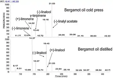 Gas chromatography with columns having a chiral stationary phase allows analyzing mixtures of enantiomers. The analysis of the enantiomeric distribution of various compounds, such as linalyl acetate and linalool, allows the characterization of the bergamot oil according to the manufacturing process and allows for the detection of possible adulteration.[12][13][14][15]