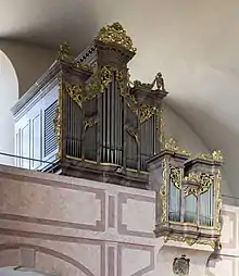 The church still possesses its original organ, built in the 18th century by the Viennese maker Gottfried Malleck; the instrument has been restored to its original state, as it was when it was played by Haydn and Beethoven at the premieres of famous works (see below). The original console, however, is no longer used but resides now in the nearby Haydn Museum.[4]