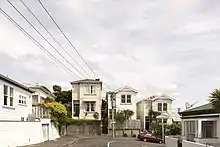 The housing stock in Berhampore is a mix of mostly lower to middle value properties, with examples of most building styles and types seen in New Zealand since European settlement. The Berhampore State Flats, located on Adelaide Road, are a fine example of the international style of architecture. They were designed by F. Gordon Wilson, chief architect at the Department of Housing Construction, and completed in 1938–39.[4]