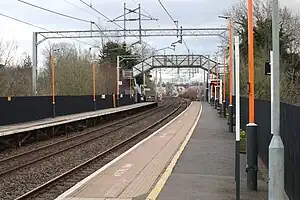 In 2004, as part of a plan to upgrade the line to carry more high speed trains, the level crossing situated to the east of the station was removed and two small low parallel tunnels were built under the railway, one for road traffic and the other for pedestrians. The road tunnel, being too narrow for two-way traffic, is controlled by traffic lights. The level crossings at Tile Hill and Canley were also removed in the upgrade.[2]