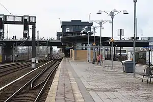A two-track reversing facility was re-established to the east of the platform in the mid-2010s. A crossover had already been installed to the west of the platform at its opening in 1999.