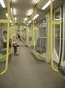 In the meanwhile, the F type had become quite old-fashioned, and the BVG decided to commission another new type. A train with completely joined compartments was chosen, and the seats along the car walls returned. This type was called H. In 1995 the first prototypes (H95) were delivered to the BVG. In 1998 and 2000 further batches (H97 and H01) were ordered from Adtranz. The interior was mainly painted white and yellow. The cars can only be uncoupled in a depot. These trains are manufactured by Bombardier Transportation.