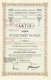 The Bern–Belp–Thun railway is a railway in Switzerland. It is also called the Gürbetalbahn (Gürbe Valley Railway, GTB) after the company that built it. The GTB was founded on 14 August 1901 for the construction and operation of the line through the Gürbetal (Gürbe valley).