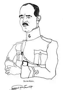 As part of the Polish–Soviet War, Śliwiński set off with his regiment to Brody in Eastern Małopolska (today in western Ukraine) on March 8, 1920. He took part in the Kiev Offensive in Ukraine (April–May 1920) and on the Lithuanian-Belarusian front. He received the rank of Lieutenant colonel on April 1, 1920.[2] Wounded, he was treated from July to October 1920 in a hospital in Poznań, before returning to his unit. He had a reputation for being an appreciated commander, taking care of his soldiers.