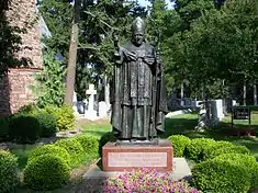 McQuaid died at his residence in Rochester on January 18, 1909, two days after the 61st anniversary of his priestly ordination.[36] Following his death, the bell of St. Patrick's Cathedral tolled 86 times, one for each year of his life.[92] McQuaid is buried at Holy Sepulchre Cemetery, which he himself founded in 1871.[93]