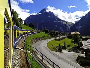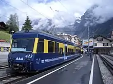 The Bernese Oberland Railway (German: Berner Oberland-Bahn, BOB) is a narrow-gauge mountain railway in the Bernese Oberland region of Switzerland. It runs, via a "Y" junction at Zweilütschinen to serve Lauterbrunnen and Grindelwald from Interlaken. The railway is rack assisted (that is although an adhesion railway, rack and pinion operation is used on steep sections of the line to assist traction).[1]