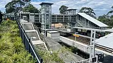 ![]() Looking southbound to the station, with a Tangara on Platform 2 in October 2022 | ||||||||||||||||||||||||||||||