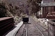 Train working to the colliery fell off in the mid-1970s in favour of road transport. No train ran to the colliery after about June 1978.[3] The rails from the cement works to the mine, however, remained in situ for another 10 years. An opening was provided in the motorway built across the line in the late 1980s.[5]