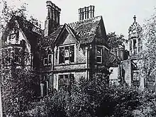 The Hall was designed by J. A. Chatwin and built as a gothic style Victorian mansion on the outskirts of Solihull, Warwickshire. Work commenced in 1870 and was completed in 1880, with South and North Lodges added in 1884 and 1905 respectively. The main entrance was via the South Lodge, from Marsh Lane, through vast iron gates designed by Gillott himself; the lock design incorporated pen nib shapes, alluding to the family business that had made them their fortune. The half-mile driveway still exists, though it is now severed by the main A41 Solihull by-pass.