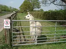 BLS is a result of overexposure of a juvenile llama, a cria, to humans, which results in the cria imprinting on its human handlers to such a degree that it considers them to be fellow llamas.[5] Imprinting can be caused by bottle feeding, which is utilized due to a cria rejecting its mother's milk or when there is insufficient maternal milk supply. Another contributing factor is isolation from other llamas.[1] When the cria reaches maturity, the llama can not distinguish humans from other llamas and may try to demonstrate their dominance. Adult male inter-llama interaction can be rough, including chest-ramming, charging, leg-wrestling, and biting, and they are strongly territorial. In some severe cases, llamas with BLS may sneak up to their owners and attack them from behind.[6] Male llamas with this condition become dangerous when this behavior is directed toward humans and they usually have to be euthanised. Female llamas can also have berserk llama syndrome but their behavior is usually limited to spitting and difficult handling.[5]