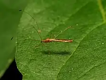 Berytidae is a family of the order Hemiptera ("true bugs"), commonly called stilt bugs[2] or thread bugs.[3] Most berytids are brown to yellow, with species that are plant sap feeders, a few being predaceous. About 200 species are known from all around the world and they are classified into three subfamilies.