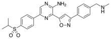 Berzosertib (VE-822, VX-970, M6620) is a drug originally invented by Vertex Pharmaceuticals and licensed to Merck KGaA, Darmstadt, Germany for development. It acts as a potent inhibitor of the enzyme ataxia telangiectasia and Rad3 related (ATR) and with lower potency as an inhibitor of ATM serine/threonine kinase (ATM). These enzymes are both involved in detecting DNA damage as part of cell cycle checkpoints during cell division. By inhibiting their activity, berzosertib interferes with the ability of rapidly dividing cells to detect damage to DNA, and this makes it useful as a potential treatment for some forms of cancer by causing accumulation of DNA damage in the cancer cells and thus reducing their viability. It has progressed furthest in trials for the treatment of ovarian cancer, though also shows activity against numerous other cancer types.[1][2][3]
