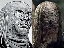 ![]() Beta, as he appears in the comic book series (left) and as portrayed by Ryan Hurst in the television series (right). | |