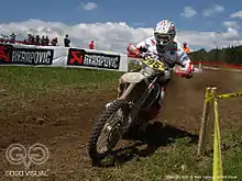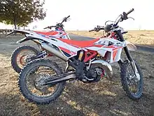 Beta has its origins in 1904 as a bicycle manufacturing company named "Società Giuseppe Bianchi",[2] originally based in the town of Via Bellariva and later moved to Florence. The name Beta comes from the initials of Bianchi, Enzo and Tosi, Arrigo who ran the company at that time. Currently the company is run by Lapo Bianchi great grand-son of Giuseppe Bianchi the company founder.[3] The company started making motorcycles in 1948. Focusing on two-stroke street bikes through the 1950s and 1960s, the company began development and production of off-road motorcycles in the late 1960s with the introduction of the 100cc motocross model XC-100 in 1967.[4] The off-road models were initially observed trials bikes.[5] In 2004 Beta entered the 4-stroke enduro market with bikes using KTM motors. By the 2010s they were producing both two-stroke and four-stroke off-road bikes with Beta designed motors.[6]