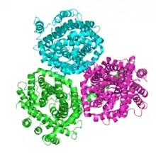 ![]() BetP (betaine transporter) from Cornyebacterium glutamicum. PDB 3p03 | |||||||||