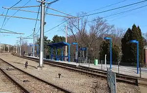 Bethel Village is a station on Pittsburgh Regional Transit's light rail, located in Bethel Park, Pennsylvania. A street level stop, the station is designed to serve area residents that can walk to the station as well as shoppers who want to access the variety of big box stores located near the station and just to the north of the South Hills Village mall. The stop featured a turnaround loop for PCC's operating on the 47D Drake service, and was intended for cars operating on shuttle services that terminated at Dorchester. However, the loop saw very limited usage, as cars were prone to derailing on its tight curve, and was dismantled in 1997.