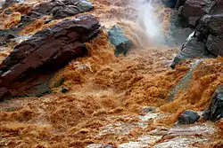 It is dramatic evidence of the catastrophic erosion of northwestern Madagascar.[2] Removal of the native forest for cultivation and pastureland during the past 50 years has led to massive annual soil losses approaching 250 metric tonnes per hectare (112 tons per acre) in some regions of the island, the largest amount recorded anywhere in the world. Several fish species are endemic to the river basin, including the three cichlids Paretroplus petiti, P. tsimoly and P. maculatus.