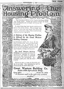 In 1922 the United States embraced a nationwide campaign of home ownership, modernization, and beautification because of a critical shortage of homes in the years right after World War I. This was the Better Homes Movement, which was initiated in the pages of the Butterick Publishing Company's household magazine, The Delineator,[1] under the editorship of Marie Mattingly Meloney. The campaign celebrated home ownership, home maintenance and improvement, and home decoration as means of motivating responsible consumer behavior; it also expanded the market for consumer products. Annual local campaigns — or "better homes demonstration weeks" — encouraged people to own, build, remodel, and improve their homes and distributed advice on creating home furnishings and decorations. In 1923, another department publication promoted ethnic and racial homogeneity by urging potential home buyers to consider the "general type of people living in the neighborhood" before making a purchase.