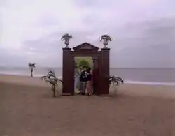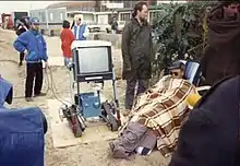 For the first time since the series began, filming of several scenes took place on location. To film the "Better Than Life" scenarios the crew went to locations including a seaside landscape in Rhyl[5] and Sacha's Hotel in Manchester.[6] The same hotel would later hold science fiction conventions for Star Trek, Space: 1999 and Doctor Who.[7] The seaside beach location caused a headache as it was dull and cold looking. One scene proved so problematic – when they were meant to be sunbathing on the "paradise-like" beach, Craig Charles and Danny John-Jules could not stop shivering – that the scenes were re-written and re-shot as on a golf course.[8] Even the golf course scenes looked dull and cold looking,[8] but director Ed Bye convinced the crew that it was okay and that the sunshine could be put in during the edit.[5] However, it couldn't be made to look sunny and it wasn't until the episode was remastered that the sunshine was finally seen.[9]