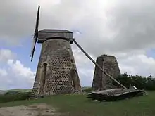 During May 2005, funds were raised for restoration of Betty's Hope by organising a concert called "A Penny Concert."[1] The mill was refurbished and the sails of the first windmill were reinstalled in 1995. After recommissioning of the mill, it is run for demonstration purposes on special occasions, since the stone mill walls are old and fragile.[5] However, the sails are kept mounted all through the year.[2] Following the restoration, the Betty's Hope project won the "5th Ann. Islands Eco-Tourism Award" in 1995. On 28 January 2005, the Eco-Enhancement Upgrade of Betty's Hope was also launched.[1]