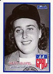 Betty Warfel (May 15, 1928 – September 23, 1990) was a pitcher and utility infielder who played in the All-American Girls Professional Baseball League between the 1948 and 1949 seasons. Listed at 5 ft 8 in (1.73 m), 135 lb., Warfel batted and threw right-handed. She was born in Enola, Pennsylvania.[1][2]