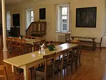 In December 2013 the prioress died, and with the care for the building complex proving too demanding for the thirteen remaining elderly nuns, they decided to move into a shared elderly home run by Franciscan and Salesian nuns nearby. In 2015, the Visitandine order and the Archdiocese of Munich and Freising worked out an arrangement to house refugees in the vacant abbey in the hope that families from Syria, Iraq, Nigeria, Afghanistan and other conflict zones might find shelter here.[1][2] Cardinal Reinhard Marx, Archbishop of Munich and Freising, has been an outspoken advocate on behalf of migrants, refugees, and asylum seekers.[3] The abbey can house 60 refugees.